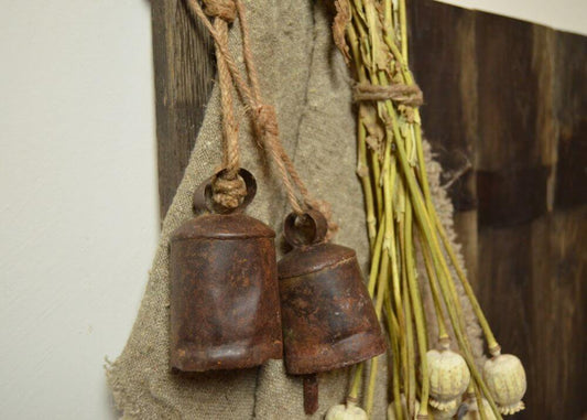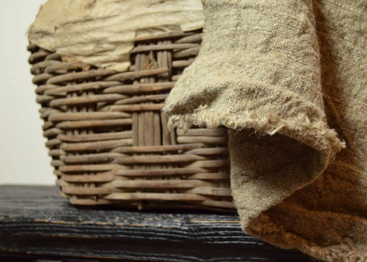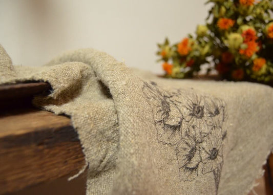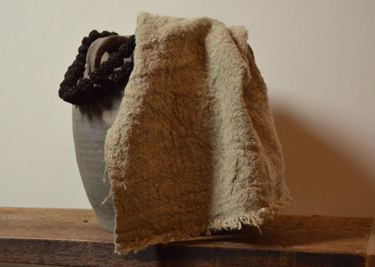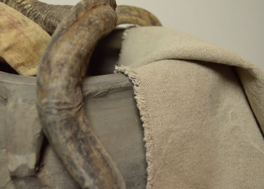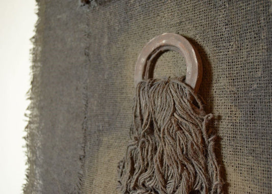 UitverkochtHandgemaakt wanddoek kalkverf op jute antraciet