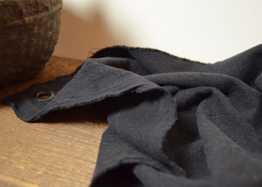 Linnen keukendoek gerafeld zwart 50x60 met zeiloog