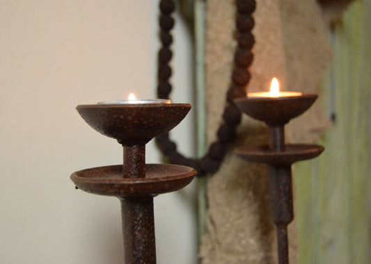 Stoere ijzeren tafel kandelaar voor waxinelichtje