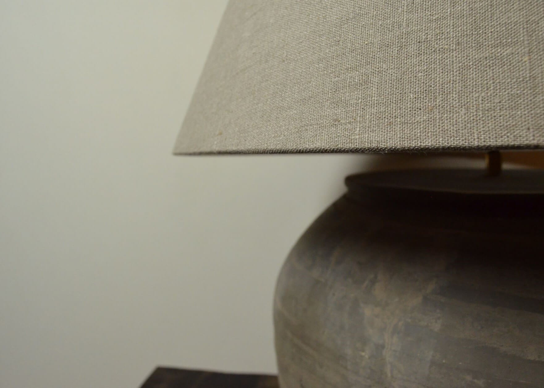 Authentieke grijze kruiklamp XL met linnen kap