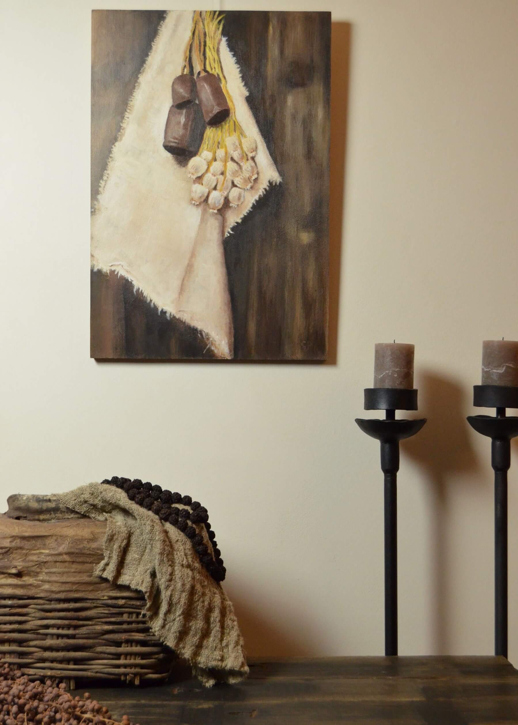 Het schilderij past perfect in een stoer & sober interieur vanwege zijn sobere kleuren en natuurlijke uitstraling.