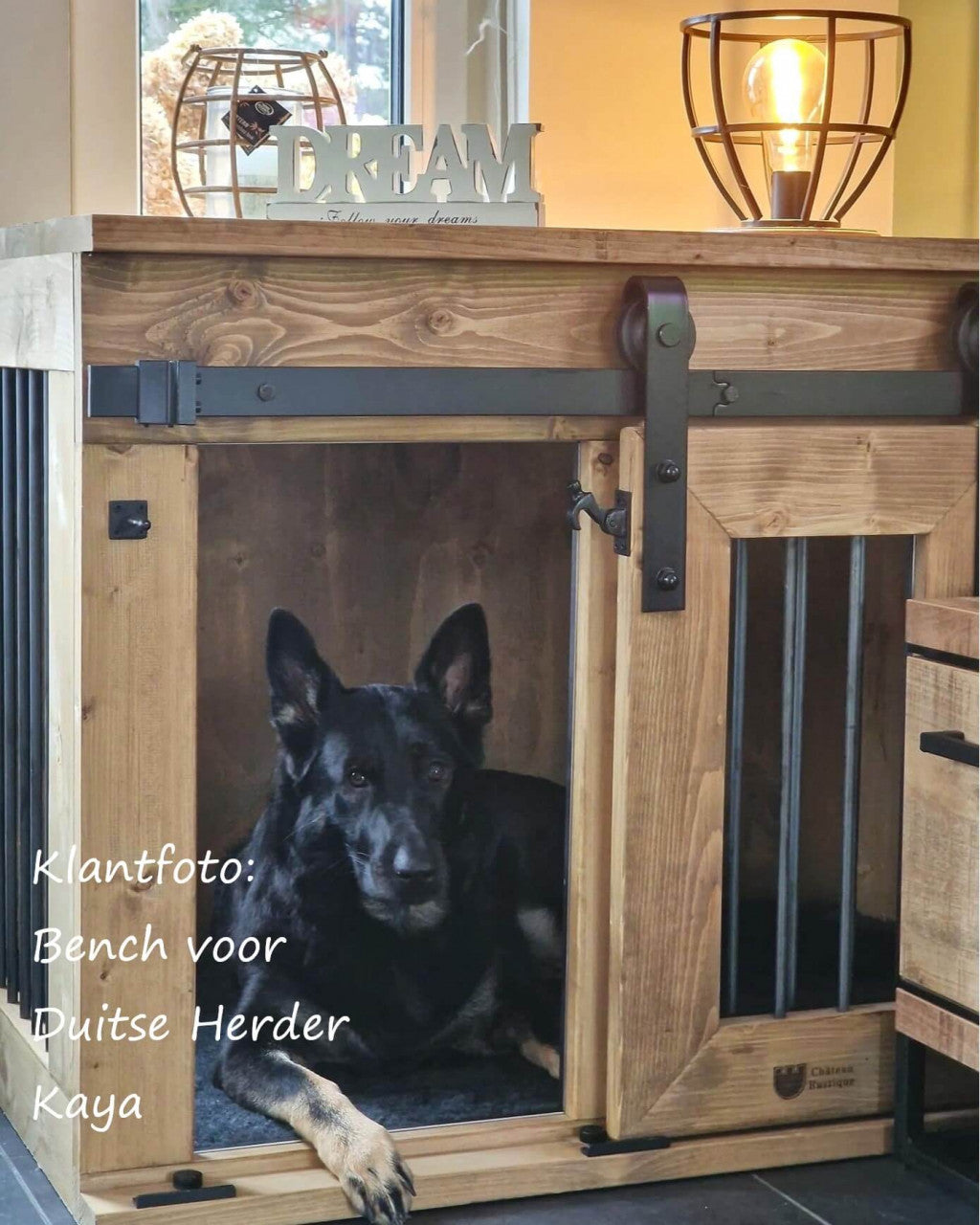 Nog meer klantfoto's zien van hun maatwerk hondenbench? Ga naar www.chateau-rustique.nl/blogs/klantinspiratie